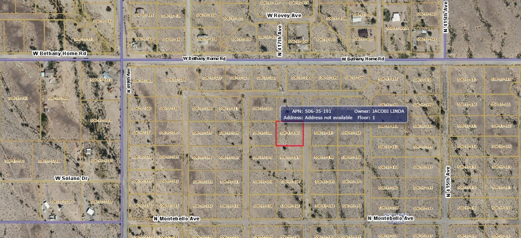 Location Info: The property is located just south of West Bethany Home Road. It is also directly south of North 417th Avenue and about two blocks south of where that road (417th Ave) dead ends. It is north of Montebello Road and in an area of scattered residences.
