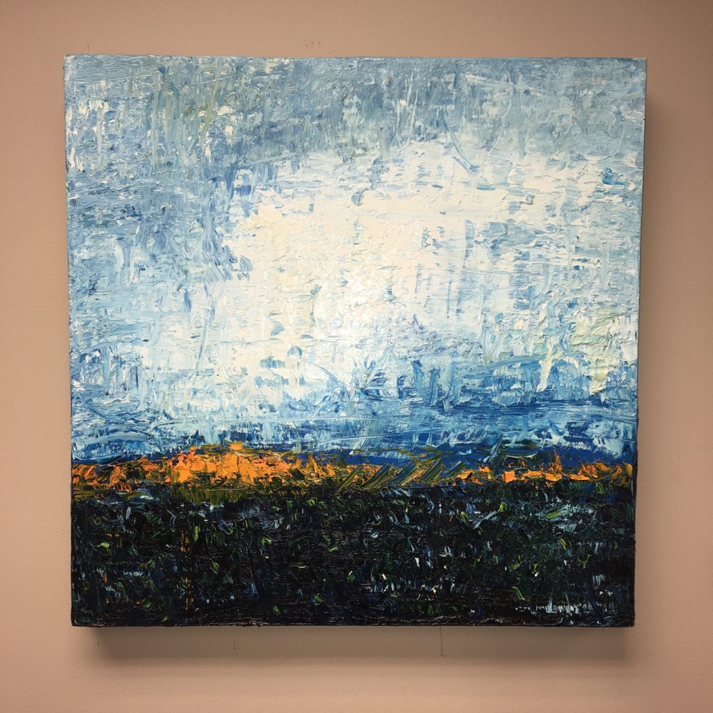 Description: Estate’s Interest In a 20″ W x 20″ L, Unframed, oil on wood Andrew Stark painting entitled ‘Plains’.