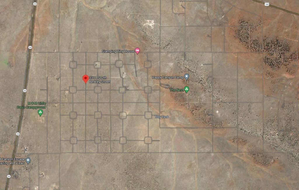 Description: Estate’s interest in 1.06 acres of vacant land in Williams, Arizona near Valle. The property is located at 3311 South Berkeley Street, Williams, AZ 86046. The status of water, power, sewer and utilities is unknown. The APN# is 503-02-021. The Account # is R0008838. The legal description is ‘Subdivision: Grand Canyon Est Unit 1, Block M, Lot 21: Sixteenth SE Quarter: NW Section: 25 Township 26 Range: 2E’